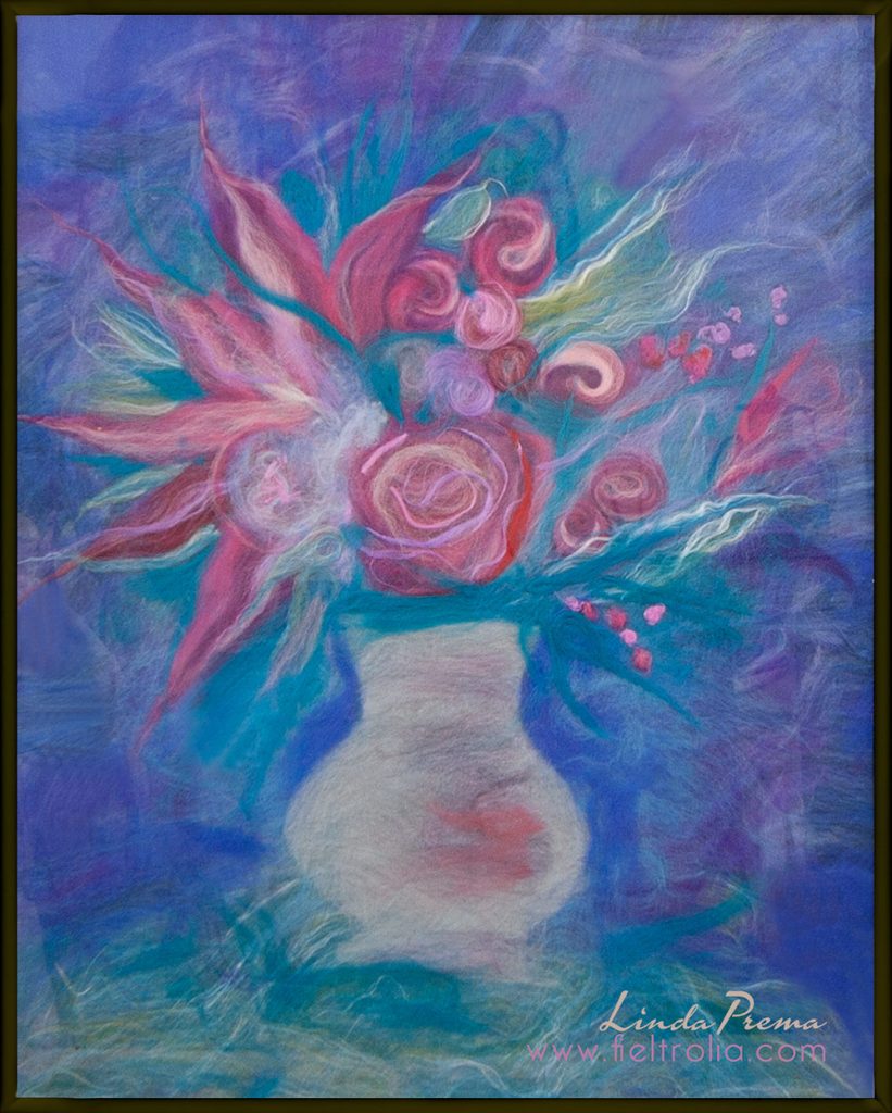 - Manejar lanas y fibras para crear un cuadro utilizando la técnica de pintado en seco, sin afieltrado.